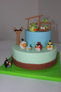 Tarta de fondant, bizcocho de vainilla, relleno de ganache de chocolate, calado con almibar de vainilla, toda la decoración en pasta de goma.